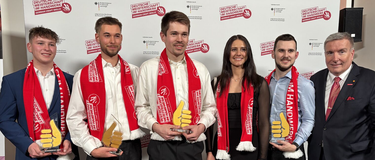 Vier junge Männer und zwei junge Frauen aus der Region Stuttgart gehören zu den besten Gesellinnen und Gesellen Deutschlands. Bei der „Deutschen Meisterschaft im Handwerk – German Craft Skills (DMH)“ überzeugten sie mit herausragenden Leistungen und holten den Bundessieg. Die Ehrung fand am 5. Dezember bei der Siegesfeier in Frankfurt am Main statt. Zusätzlich ging auch der Heribert-Späth-Preis für exzellente Ausbildungsqualität in die Region Stuttgart.