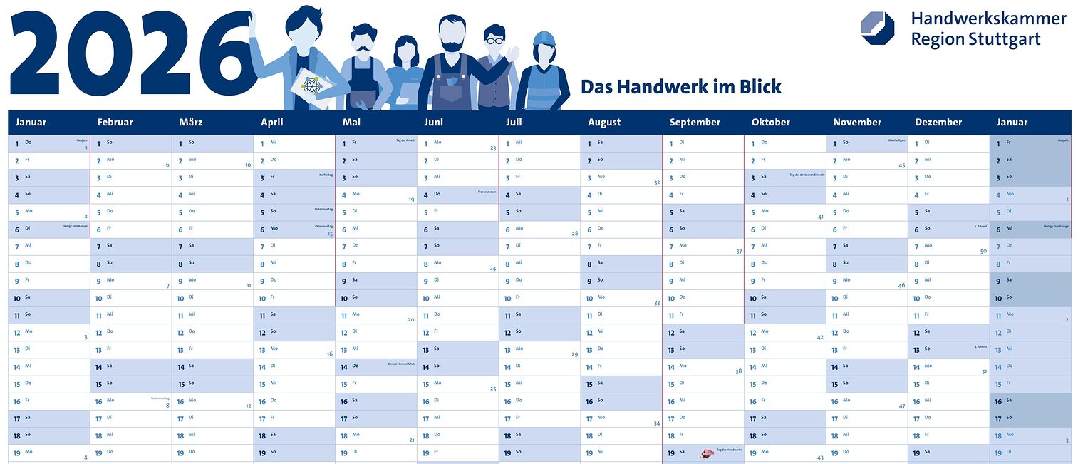 Der kostenfreie Kalender war bereits am 5. September derAusgabe 17/2025 der Deutschen Handwerks Zeitung (DHZ) beigelegt. Sie können ihn auch hier im pdf-Format herunterladen: