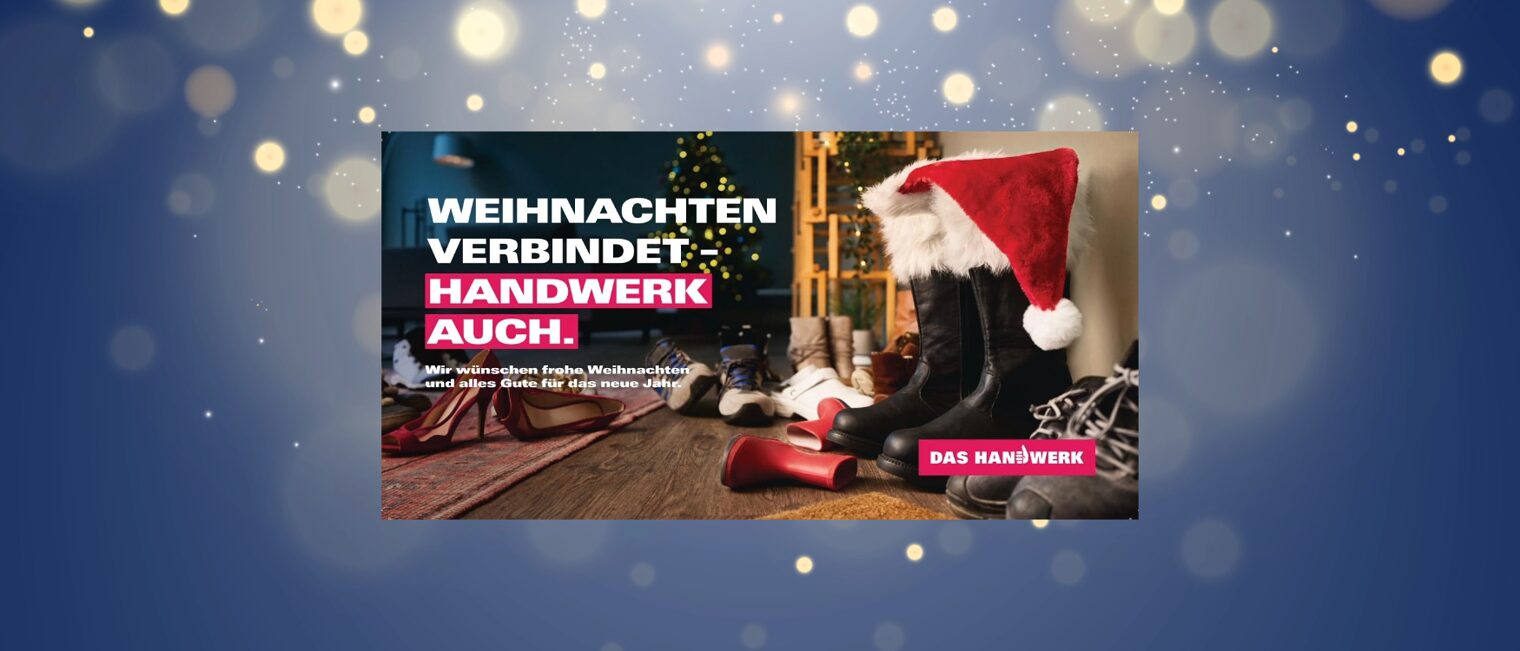 Das diesjährige Motiv mit den Sprüchen „Weihnachtsgrüße von der Handwerksfamilie“ oder „Weihnachten verbindet – Handwerk auch.“ können Sie für 0,80 EUR pro Stück als Klappkarte imWerbeportal des Handwerks bestellen. Oder Sie versehen es mit Ihrem Firmenlogo, laden es imWerbeportal herunter und geben es selbst in den Druck. Für digitale Kommunikationskanäle steht Ihnen das Weihnachtsmotiv zudem in weiteren Formaten als Download zur Verfügung – dabei können Sie zwischen dem diesjährigen Motiv und älteren Weihnachtssprüchen und -motiven auswählen.