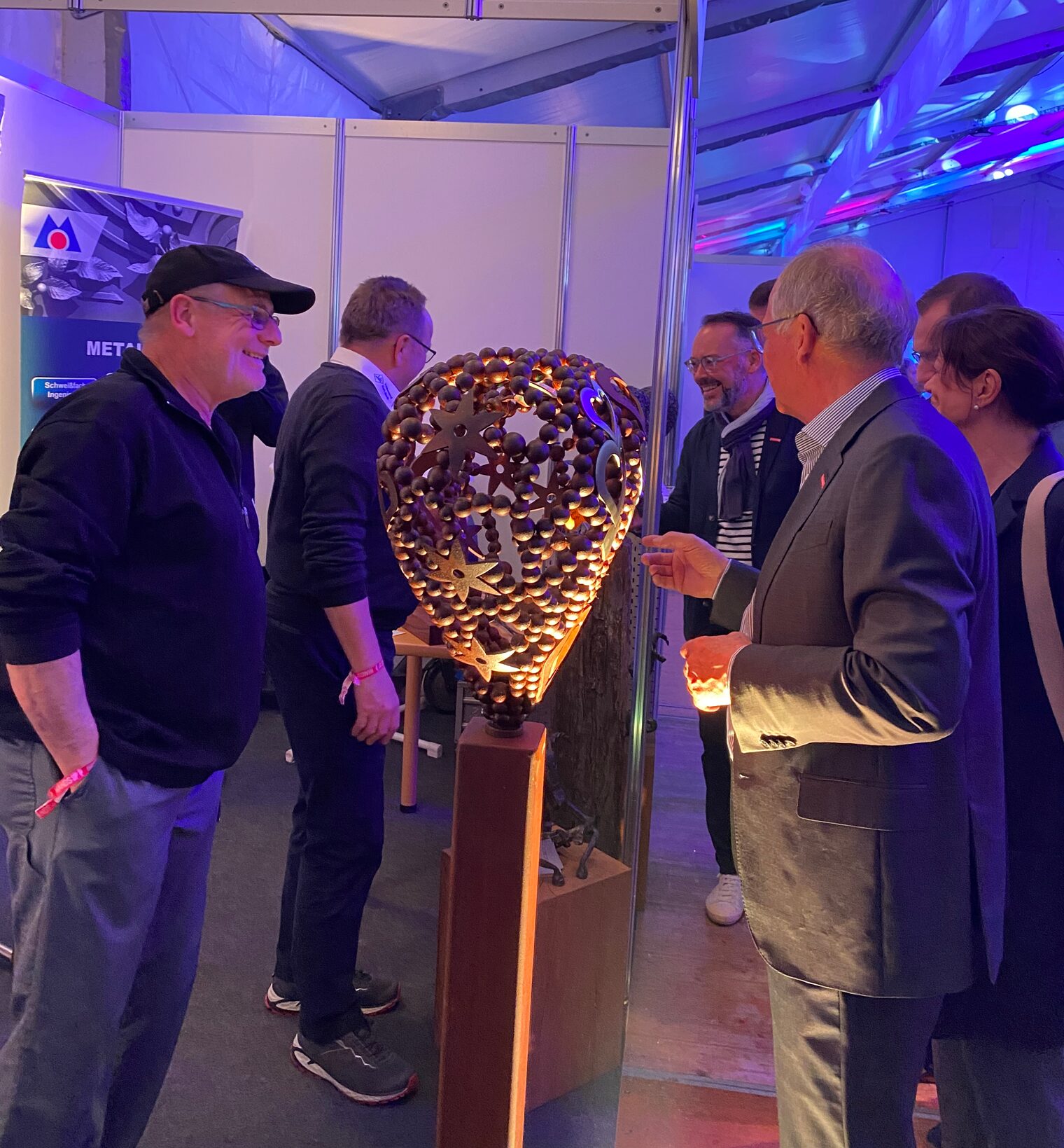 Kammerpräsident Rainer Reichhold und Hauptgeschäftsführer Peter Friedrich kamen bei ihrem Rundgang durch das Handwerkszelt mit vielen Handwerkerinnen und Handwerkern ins Gespräch – hier am Stand der Metall-Innung.