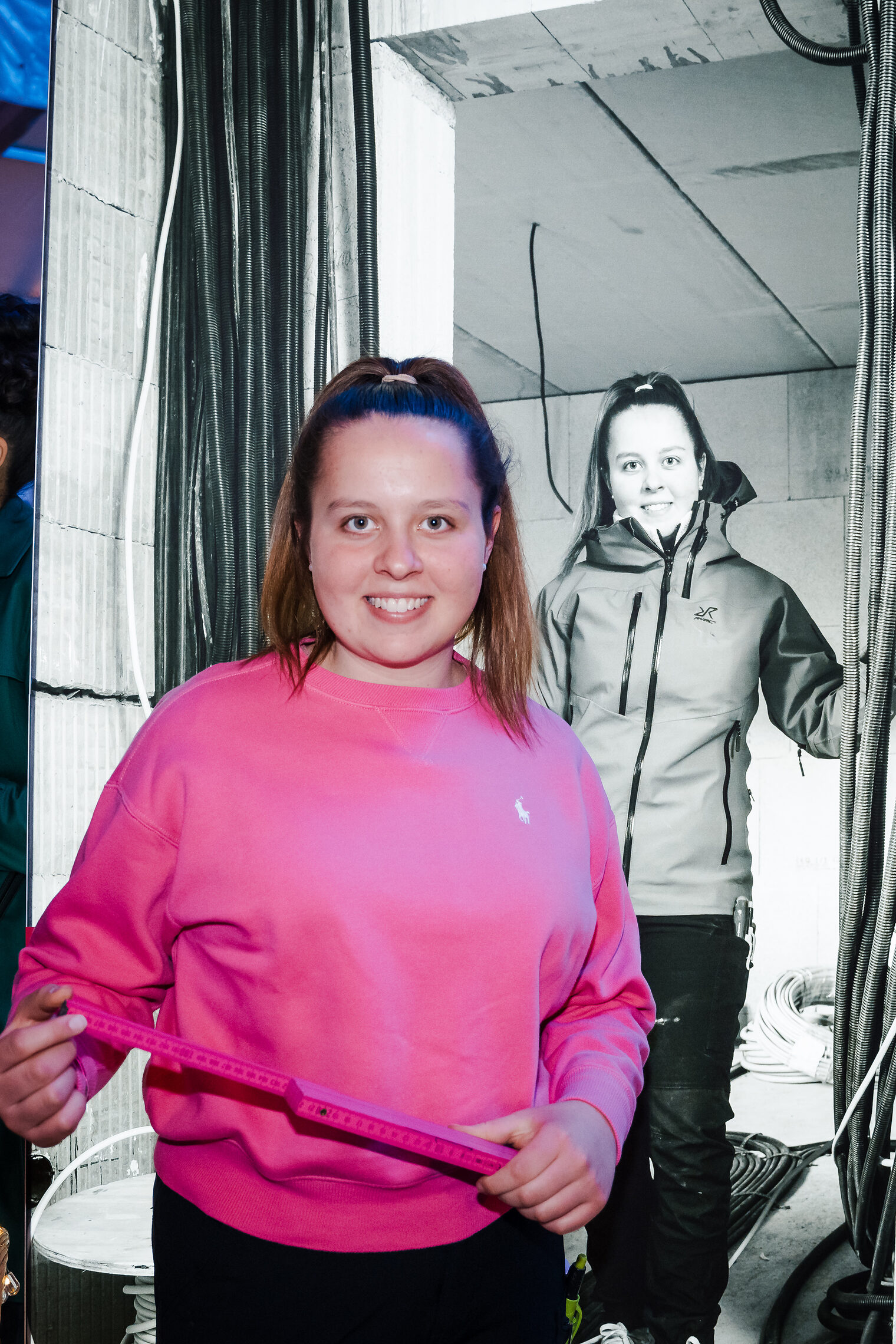 Sarah Jetter, Auszubildende zur Elektronikerin für Energie- und Gebäudetechnik, war Teil der Fotoausstellung und begrüßte die Besucherinnen und Besucher vor ihrem Foto persönlich und mit einem kleinen Geschenk.