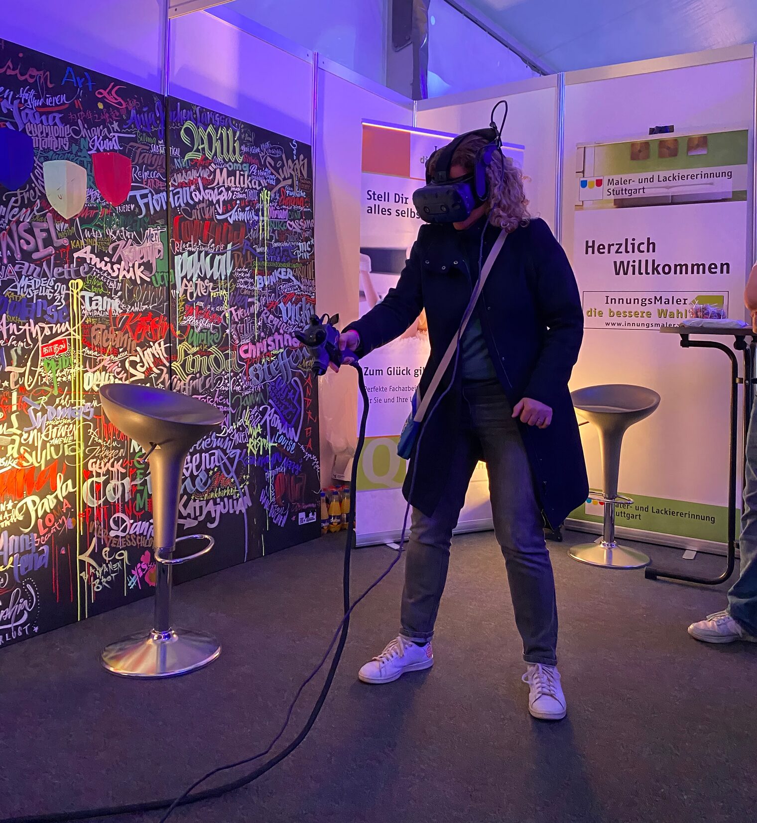 Bei der Maler- und Lackierer-Innung Stuttgart durften die Besucherinnen und Besucher sich per VR-Brille im Lackieren ausprobieren.