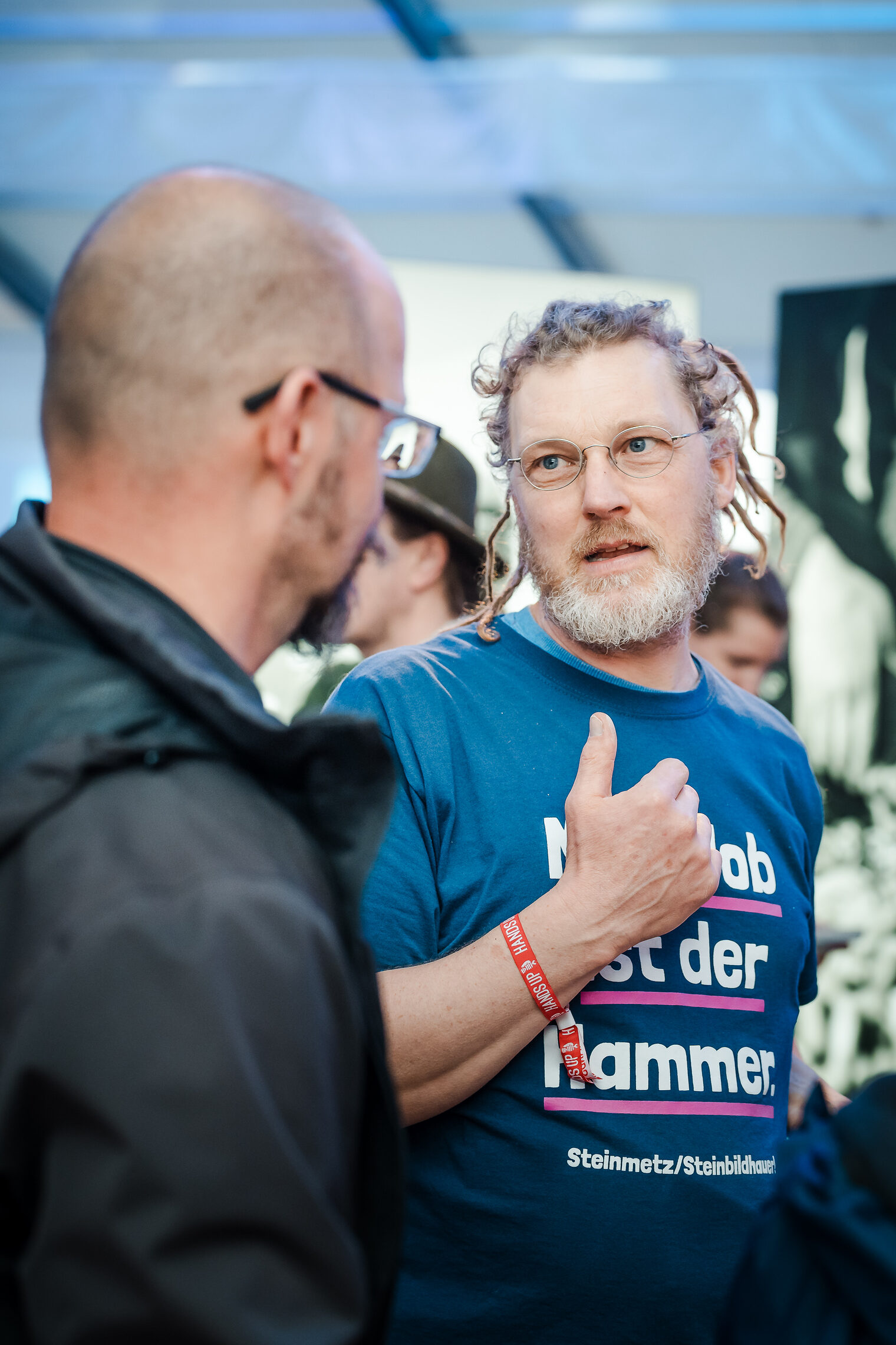 In den Spielpausen der Band war Zeit für Gespräche und den Austausch untereinander – so wie hier am Stand der Steinmetz-Innung.