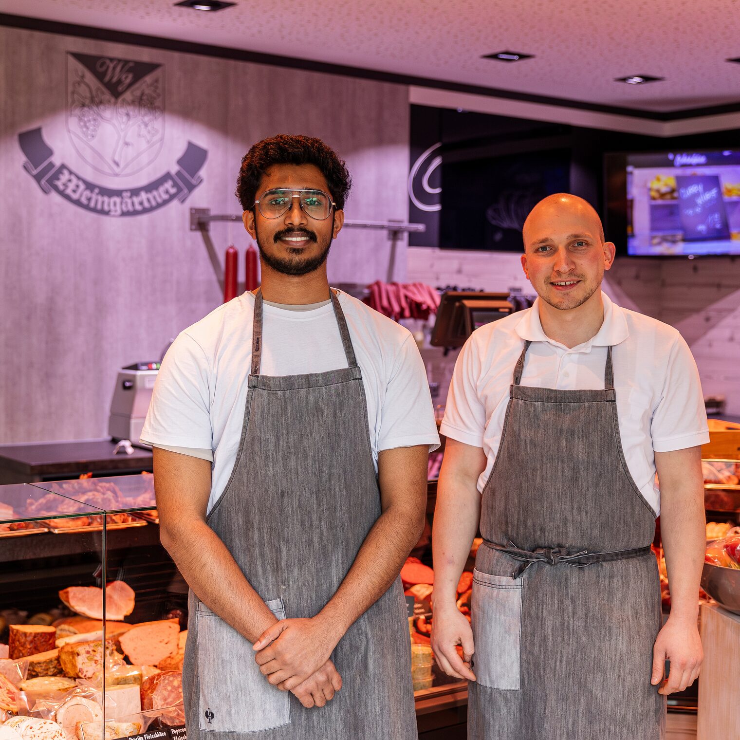 Gesucht und gefunden: Fleischer-Azubi Ajin Sabu mit seinem Chef Dennis Oßwald von der Metzgerei Weingärtner in Eislingen.